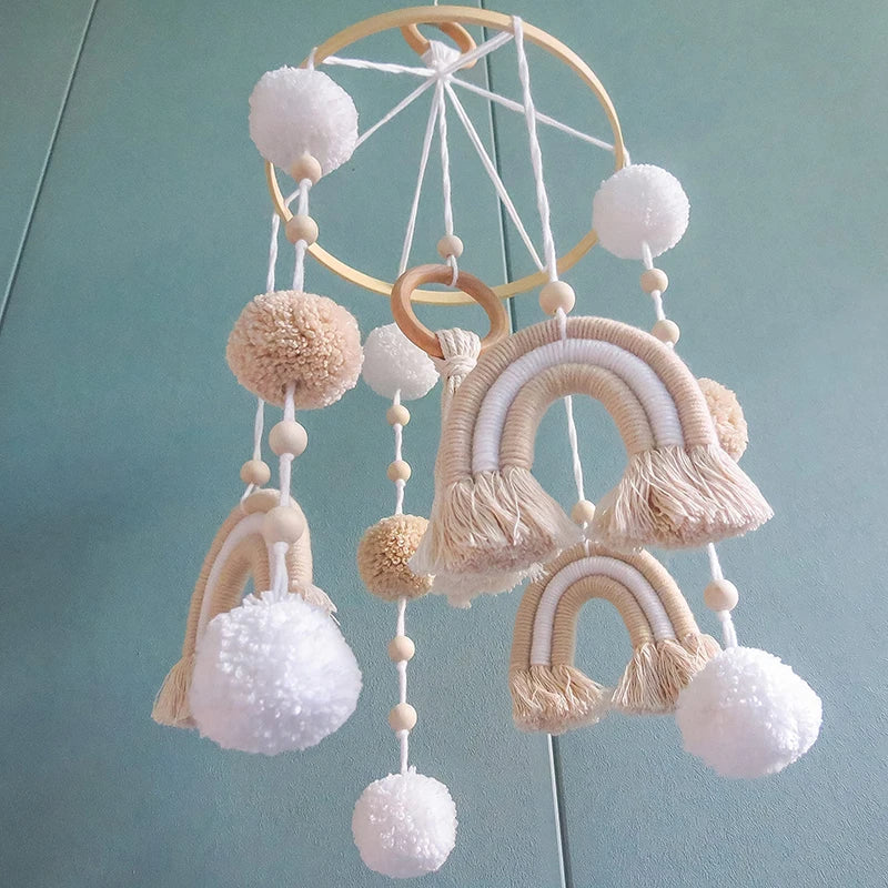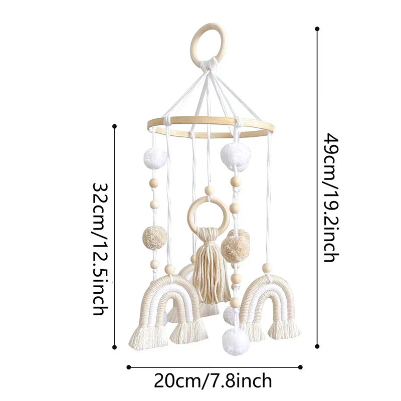 Watch your little one's eyes light up with wonder as they gaze at our enchanting Boho Tapestry Rainbow Comfort Crib Mobile. This isn't just a nursery decoration – it's your baby's first introduction to a world of colour, movement, and peaceful dreams.